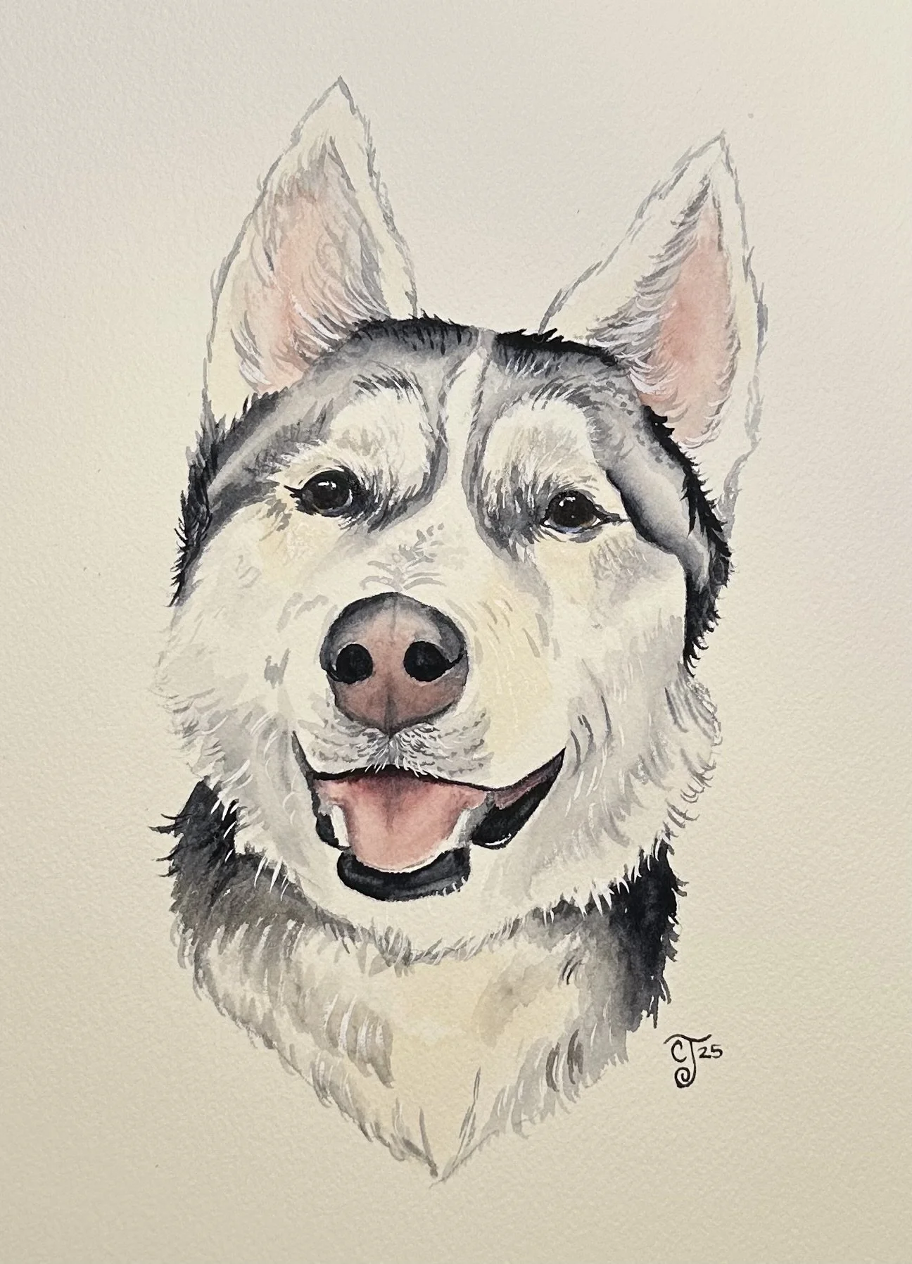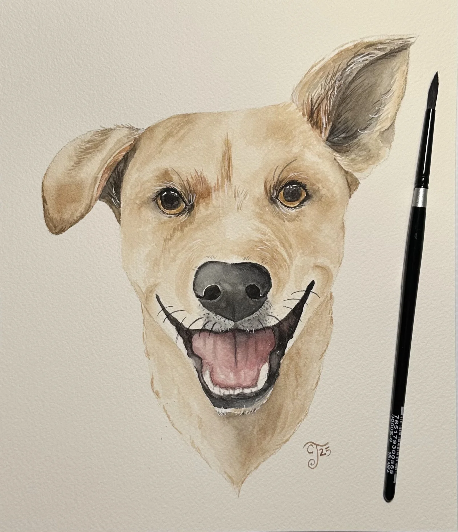 My custom watercolor pet portraits are my own artistic interpretation of your pet, while I use reference photos you provide, the painting will not be a photographic copy of the image.
